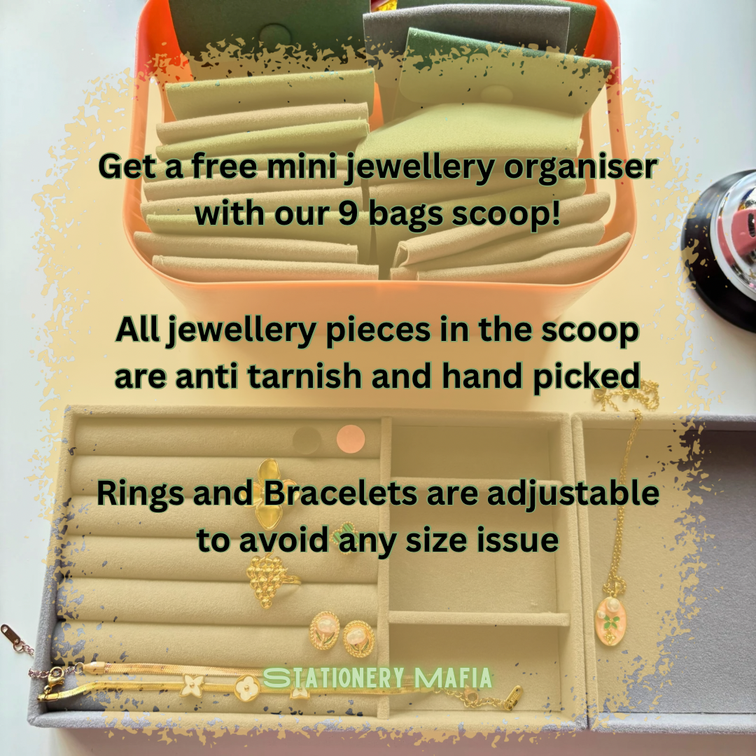 9 Bags β 3 wish colours + π FREE jewellery organizer